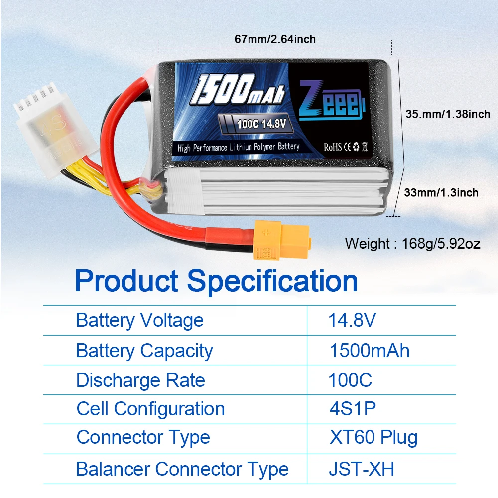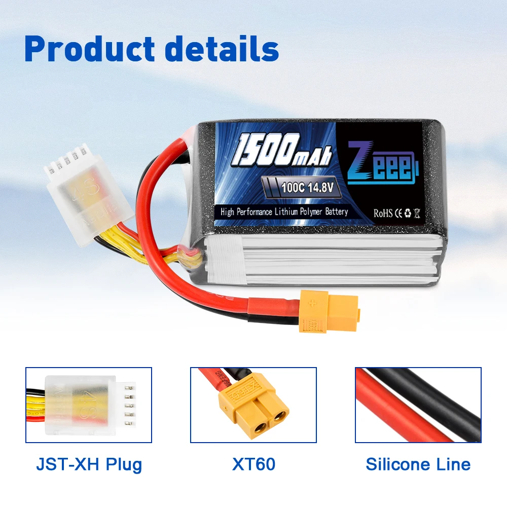 2units Zeee Lipo Battery 11.1V 120C 1500mAh 3S Softcase Graphene RC Lipo Battery with XT60 Plug for FPV Racing Drone Helicopter