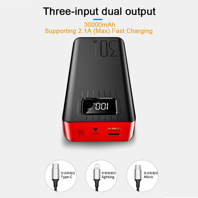 Big Promo Power Bank 30000mAh Powerbank External Battery Portable Fast Charger for All Smartphone with Charge