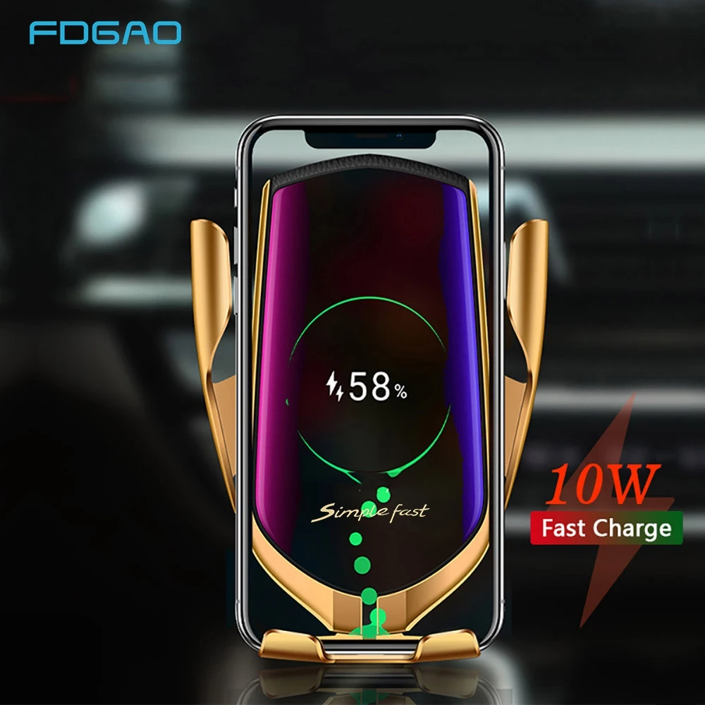FDGAO Qi Wireless Car Charger 10W Fast Charging Phone Holder Automatic Clamping Mount For iPhone 11 Pro XS XR X 8 Samsung S10 S9