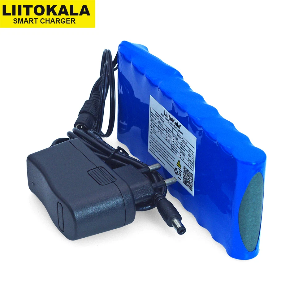 Liitokala 12V 10Ah 18650 li-lon battery pack 10000mAh with BMS Circuit Protection Board DC 5.5*2.1mm+ 12.6V 1A Charger