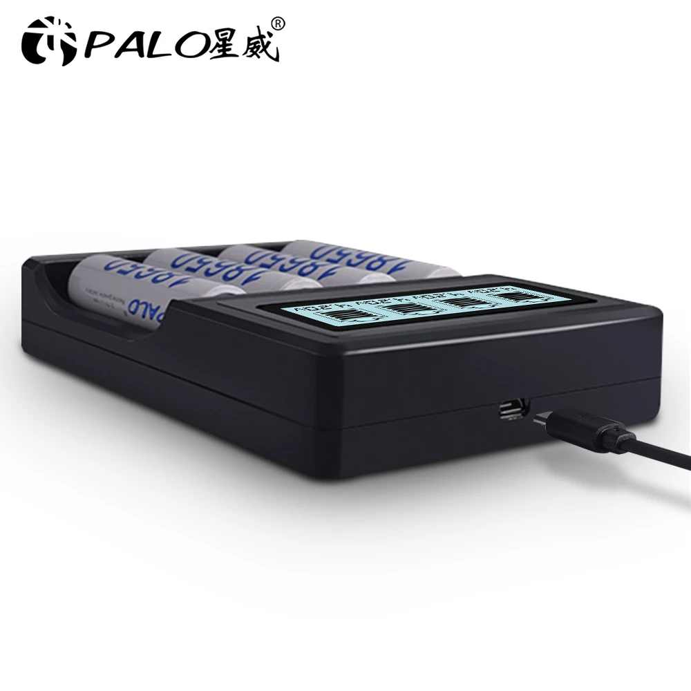 PALO USB Intelligent Charger for 1.2V Ni-Mh AA AAA battery 18650 26650 14500 3.7V Li-ion Rechargeable battery Power Bank charge