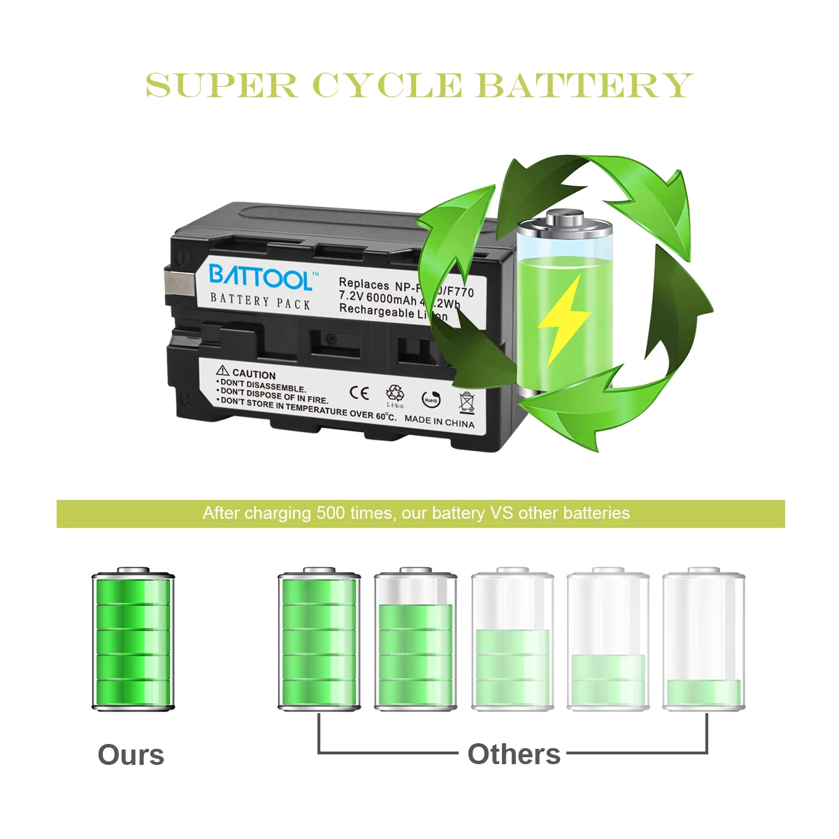 Best Seller BATTOOL 6000mAh NP-F770 NP-F750 NP F770 np f750 NPF770 750 Batteries For Sony NP-F550 NP-F770 NP-F7