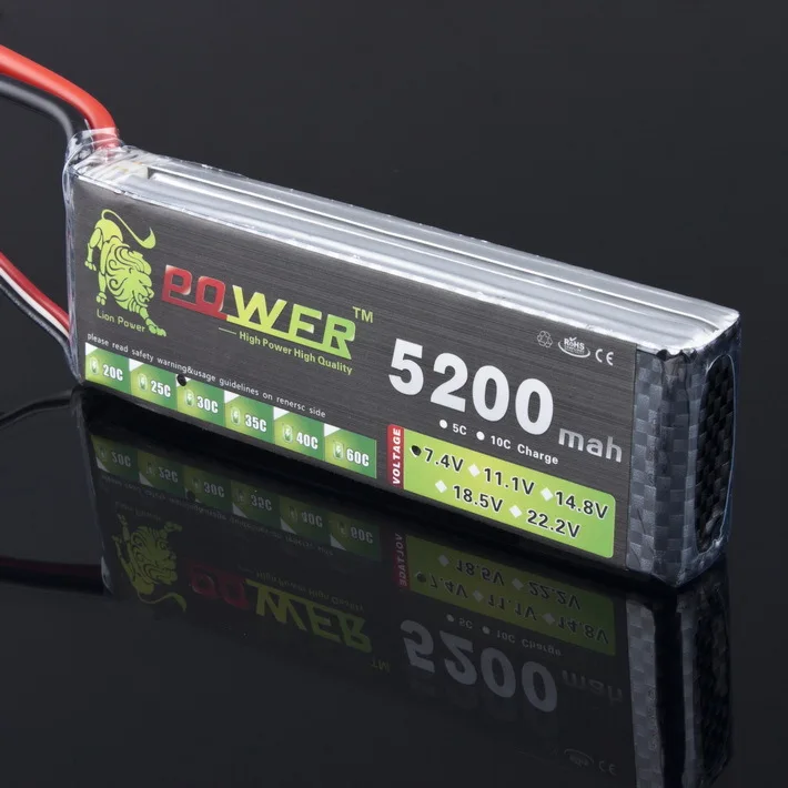 Hot Sale 2S Lion Power 7.4V 5200mAh Lipo Battery 30C-40C 2S Battery 2S LiPo 7.4 V 5200mAh 30C 2S 1P Lithium-