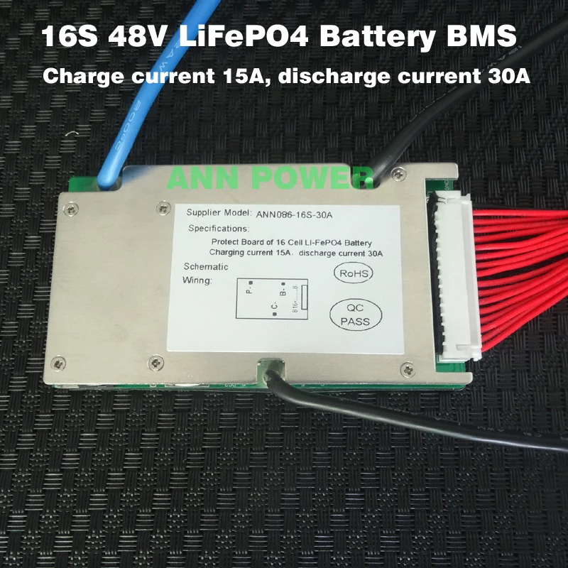 Hot Sale 48V 30A LifePO4 battery BMS for 16S 3.2V lifepo4 cell 51.2V BMS/PCM Continuous working current 30A