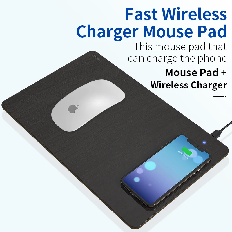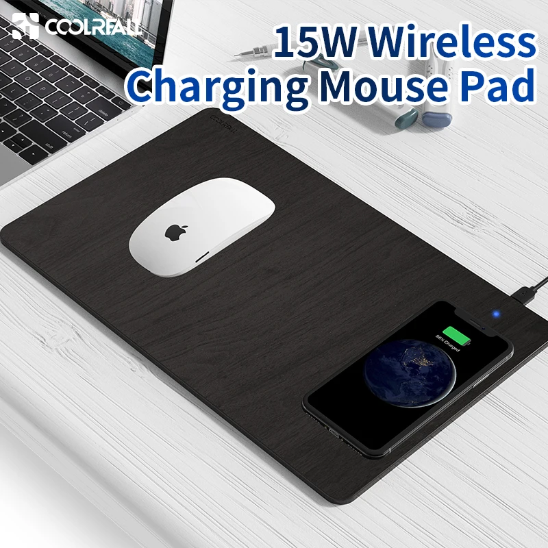 Hot Sale Coolreall Phone Wireless Charger Mouse Pad Fast Charging Mat PU Leather Computer Mousepad For iPhon