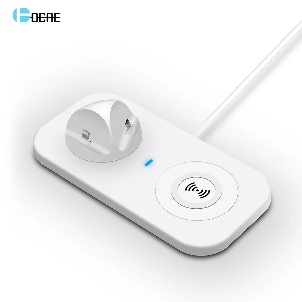 DCAE 3 in 1 Qi Wireless Charger Phone Holder USB Cable Adapter Charge Stand for iPhone XS Max XR X 8 Samsung S9 S8 Xiaomi Huawei