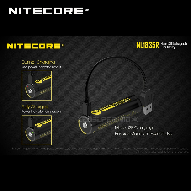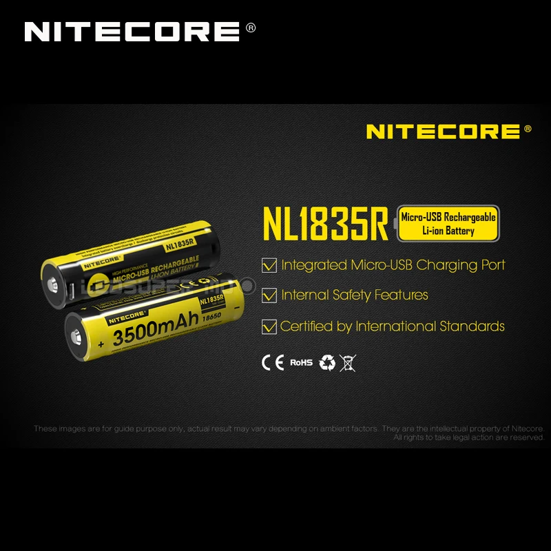 Best Seller Original Nitecore NL1835R 3500mAh 18650 Micro-USB Rechargeable Li-ion Battery with Charging Port